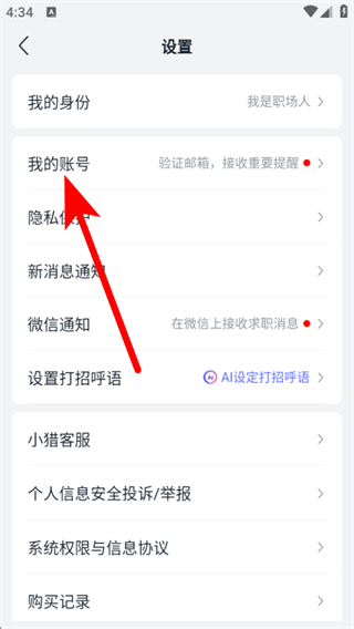 3、在設(shè)置的頁(yè)面,我們需要點(diǎn)擊我的賬號(hào)的這個(gè)選項(xiàng)。