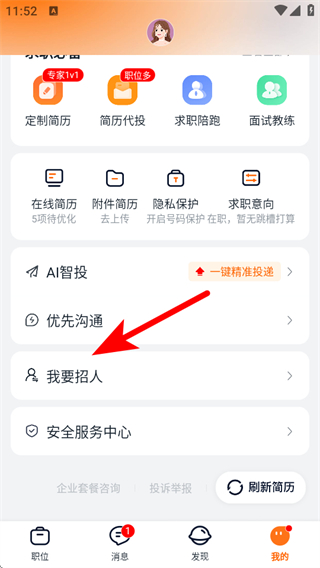 2、在個(gè)人的頁(yè)面中,我們需要點(diǎn)擊我要招人的選項(xiàng)。