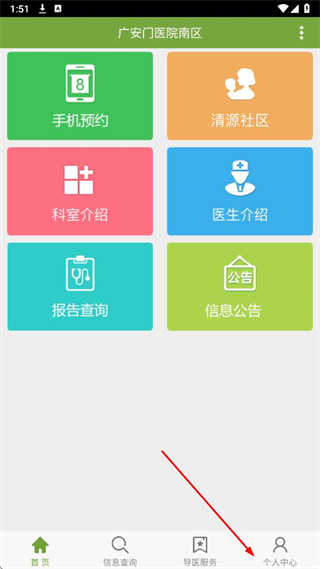 1、打開廣安門醫(yī)院南區(qū)APP,點(diǎn)擊個(gè)人中心選項(xiàng)。