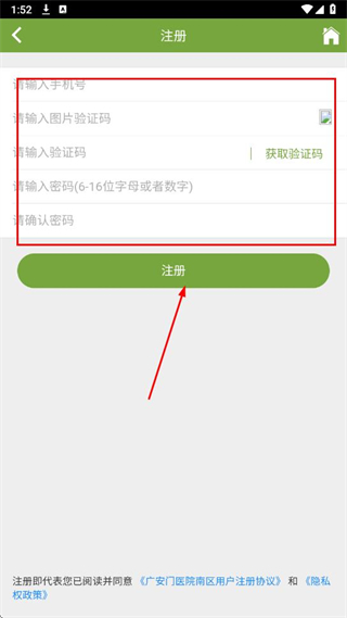 4、輸入手機(jī)號(hào)、圖片驗(yàn)證碼、短信驗(yàn)證碼,點(diǎn)擊注冊(cè)。