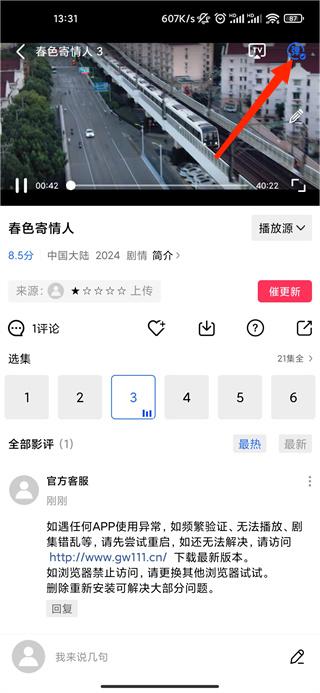 1、在播放頁面,點(diǎn)擊右上角的彈幕按鈕;