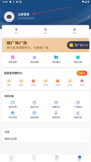 2、進入個人中心的頁面內(nèi),點擊上方立即登錄的按鈕。