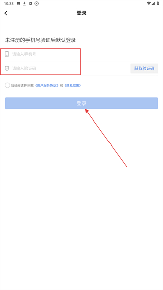 3、在登錄的界面內(nèi),輸入手機號、驗證碼再點擊登錄即可。