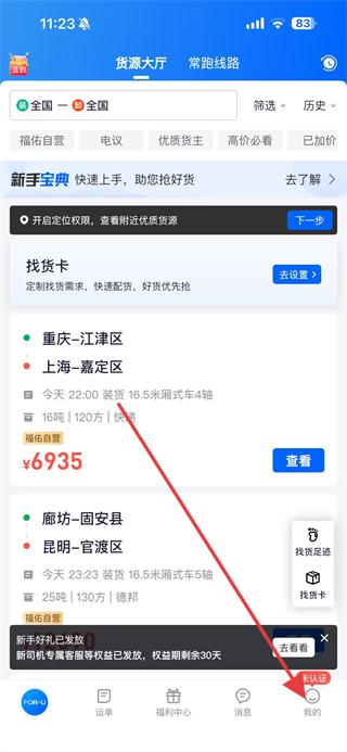 1、打開福佑卡車司機APP,點擊右下角我的,進入個人頁面。