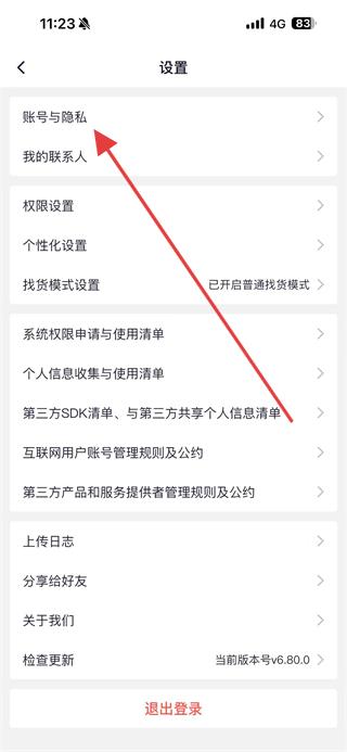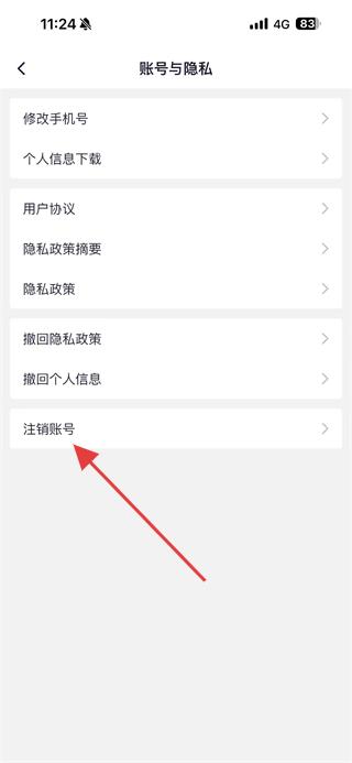 4、在賬號與隱私頁面,點擊注銷賬號選項,即可按照提示完成賬號注銷操作。