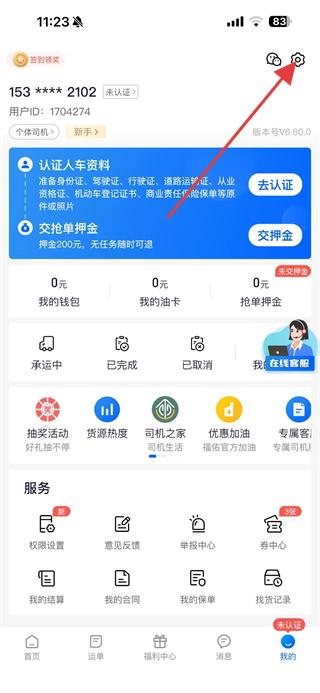 1、打開福佑卡車司機APP,點擊右下角我的選項,進入個人中心頁面。