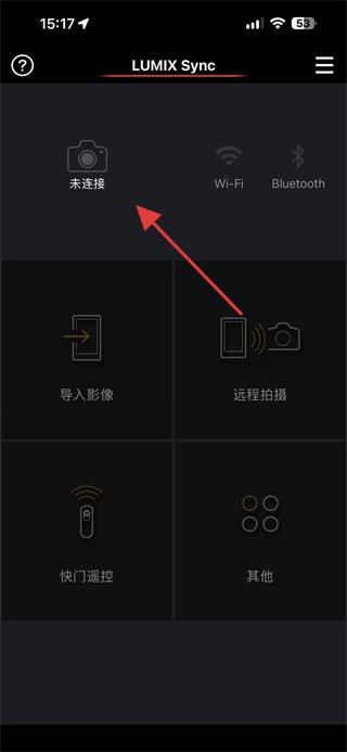 1.打開(kāi)Lumix Sync應(yīng)用,點(diǎn)擊未連接的相機(jī)圖標(biāo),進(jìn)入相機(jī)注冊(cè)配對(duì)流程。