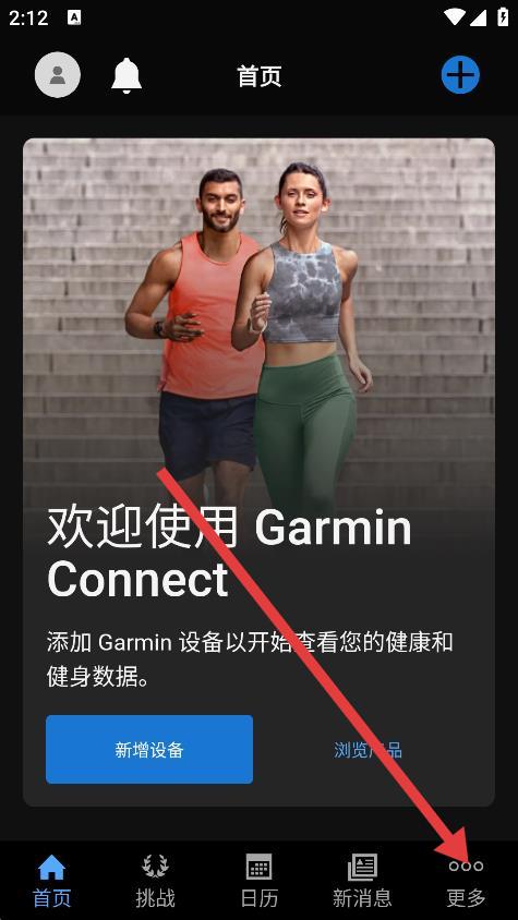 1、打開(kāi)Garmin Connect APP首頁(yè),點(diǎn)擊新增設(shè)備,進(jìn)入設(shè)備選擇頁(yè)面。