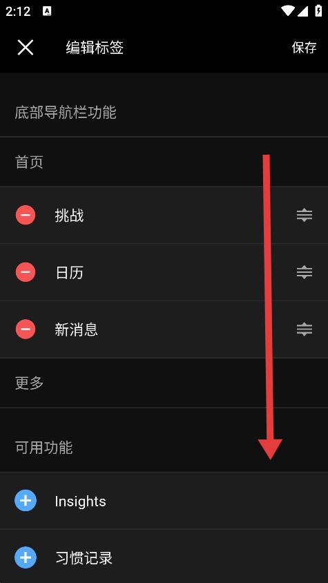 3、進(jìn)入編輯標(biāo)簽頁(yè)面,滑動(dòng)屏幕找到可用功能區(qū)域。