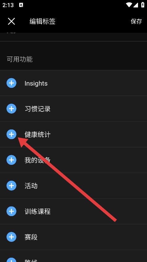 4、找到健康統(tǒng)計(jì),點(diǎn)擊藍(lán)色按鈕,點(diǎn)擊保存,即可添加健康統(tǒng)計(jì)功能。