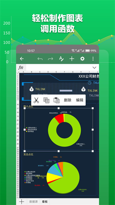 熟知的電腦端Excel功能可以在安卓端應(yīng)用中使用,例如:公式,表格,圖表,迷你圖等;