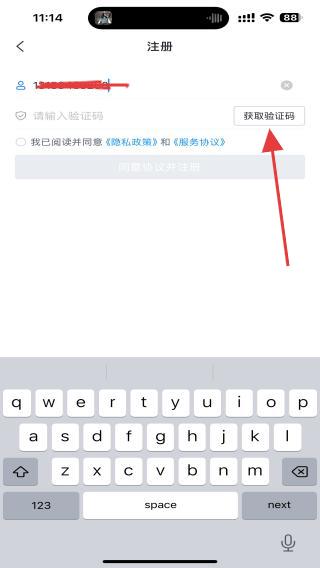 2、在注冊頁面,輸入需要注冊的手機號,并點擊獲取驗證碼。