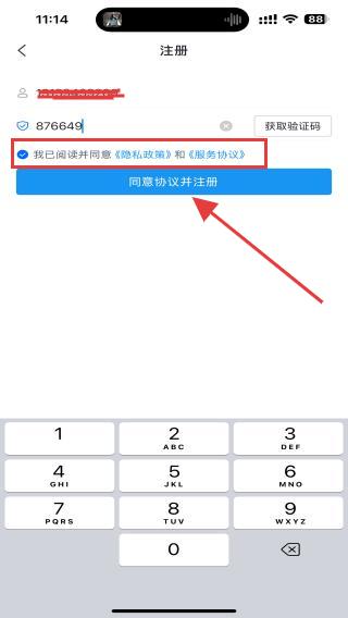 4、注冊前,需要勾選我已閱讀并同意隱私政策、服務協(xié)議,再點擊同意協(xié)議并注冊的按鈕。