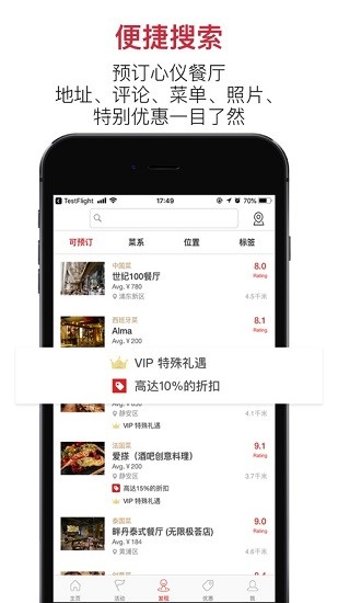 用戶可以通過diningcity平臺上豐富的餐廳介紹、美食愛好者的真實評價和圖片等指南信息,輕松搜索心儀餐廳,并進行即時的在線預訂與取消。另外,還提供“訂立省”服務 -不同時段不同優(yōu)惠,最高可享50%折扣。diningcity會員還可享受“會員專屬禮遇”,在精選會員餐廳獲得免費歡迎酒水和優(yōu)先靠窗座位等特別福利。