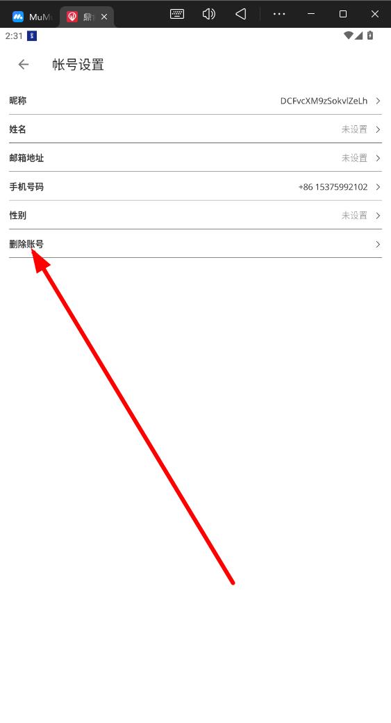 3、進入帳號設置頁面后,點擊刪除賬號選項。