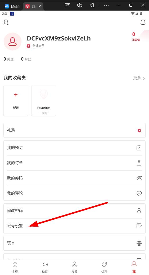 2、在個人頁面中,向下滑動找到并點擊帳號設置選項。