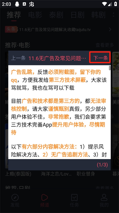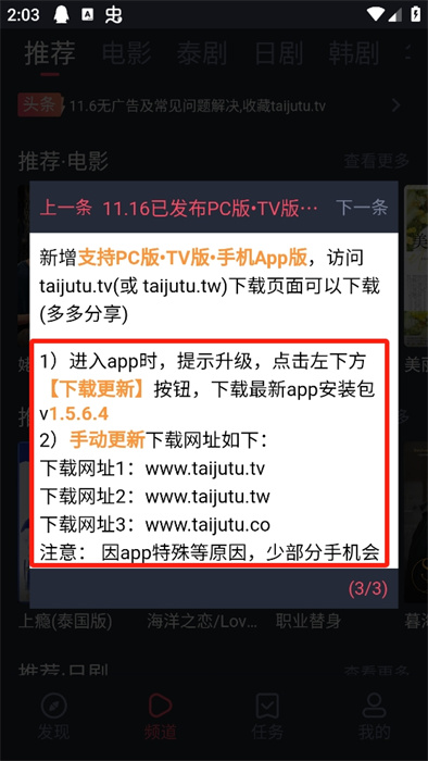 2、在公告中點(diǎn)擊【下一條】這樣就可以看到最后一頁(yè)的下載方式還有最新的下載地址;