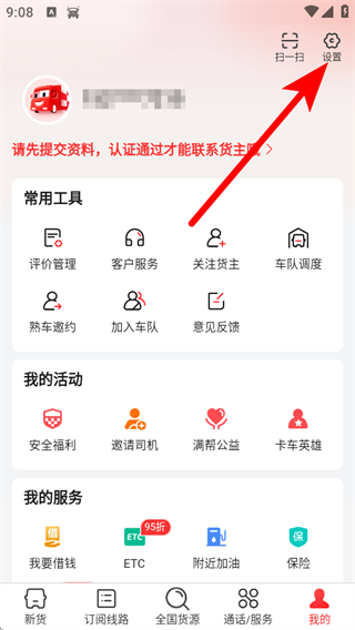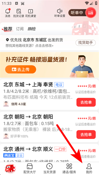 1、打開運(yùn)滿滿司機(jī)APP后,需要點擊底部我的,進(jìn)入個人頁面。