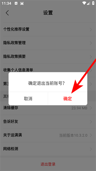 4、在退出的確認(rèn)框中,需要點擊確定,完成賬號退出的操作。