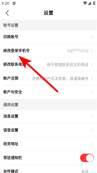 3、在設(shè)置的頁面,找到并點擊修改登錄手機(jī)號,進(jìn)入修改手機(jī)號頁面。