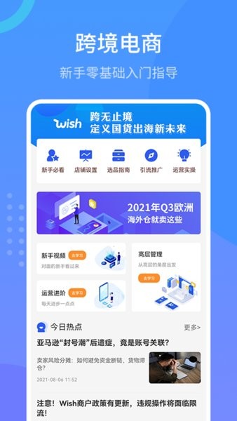 wish賣家手冊手機版是專業(yè)的營銷類型的電商手冊app,不管是從零開始還是有一定基礎的想要在wish上開店的小伙伴們,都需要來這里看一看,滿滿的干貨等你來解鎖,學到就是賺到,試試看你是否有這個實力吧!