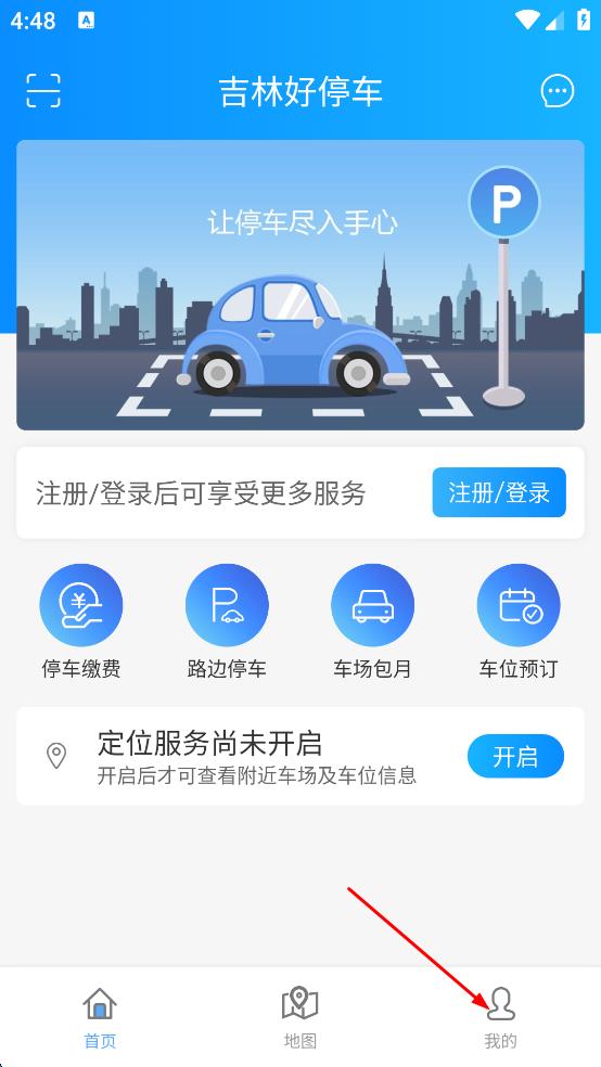 1、打開吉林好停車軟件,在底部導(dǎo)航欄找到“我的”選項(xiàng),點(diǎn)擊該選項(xiàng),進(jìn)入個(gè)人頁(yè)面。
