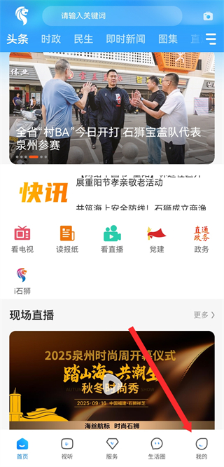 1、打開看石獅APP,點(diǎn)擊底部導(dǎo)航欄的視聽,進(jìn)入視聽的頁(yè)面。
