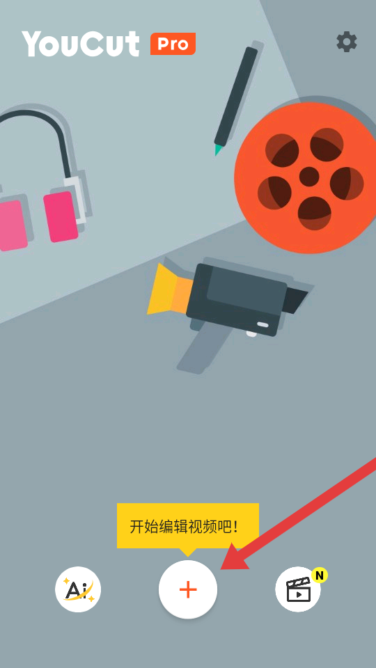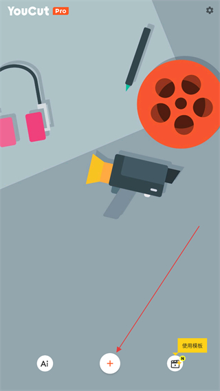 1、打開youcut視頻剪輯的APP,進入時點擊+的圖標。