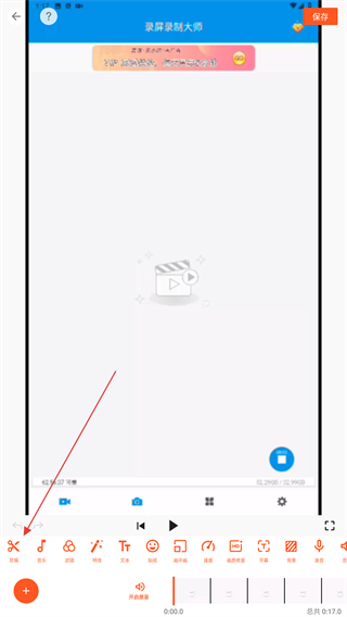 3、在視頻編輯界面,可進行剪輯等操作,完成后點擊右上角保存。