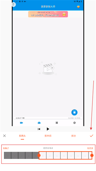 4、拖動視頻進度條兩側的按鈕后,再點擊打鉤的按鈕即可。