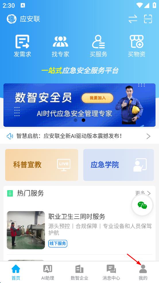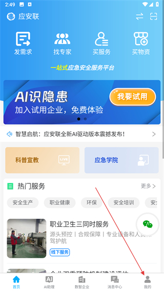 1、打開(kāi)應(yīng)安聯(lián)APP,點(diǎn)擊底部我的選項(xiàng)。