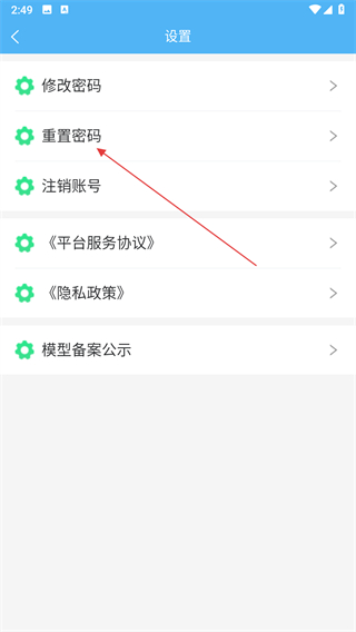 3、在設(shè)置頁(yè)面里,點(diǎn)擊重置密碼選項(xiàng)。