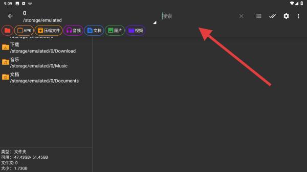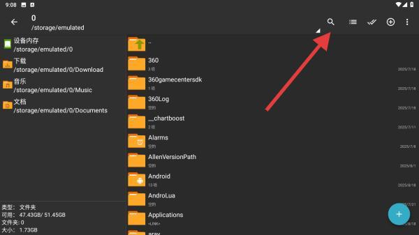 2、單擊文件或文件夾實(shí)現(xiàn)單選/取消,長(zhǎng)按激活批量選擇,復(fù)制文件夾前需取消全選狀態(tài),再點(diǎn)擊界面右上角搜索圖標(biāo)。