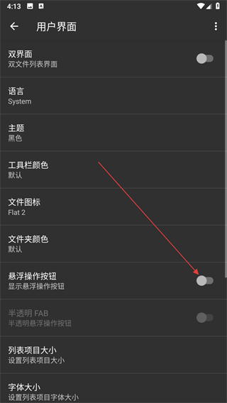 4、在用戶界面頁(yè)面,找到懸浮操作按鈕選項(xiàng),點(diǎn)擊其開關(guān)。