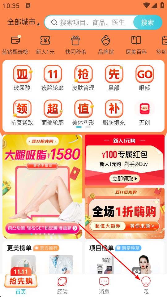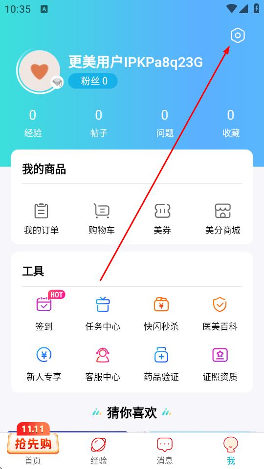 1、打開(kāi)更美APP,進(jìn)入首頁(yè),點(diǎn)擊底部導(dǎo)航欄中的我。
