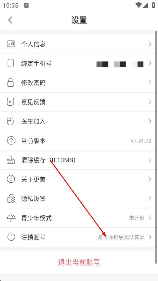 3、在設(shè)置界面中,向下滑動(dòng)找到注銷賬號(hào)選項(xiàng)并點(diǎn)擊。