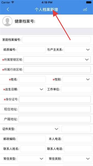 3、填寫健康檔案號(hào)等信息,完成信息提交即可。