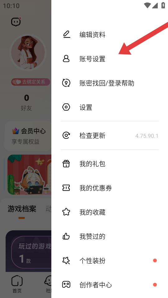 2、在系統(tǒng)的功能列表中點(diǎn)擊賬號(hào)設(shè)置的選項(xiàng),進(jìn)入賬號(hào)與綁定設(shè)置的頁(yè)面。