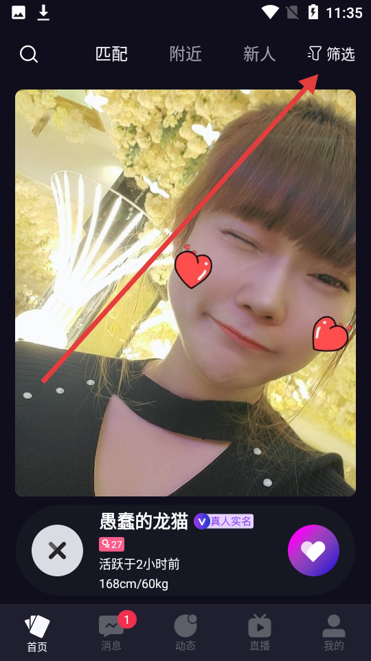 2、回到首頁(yè)后,在首頁(yè)界面的右上角位置,找到并點(diǎn)擊篩選按鈕,從而進(jìn)入篩選設(shè)置頁(yè)面。