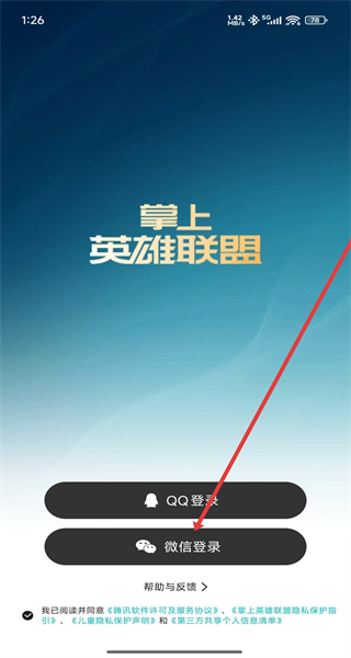 2、在進(jìn)入到掌上英雄聯(lián)盟登錄頁面,可以點擊微信登錄按鈕,使用微信號進(jìn)行登錄。