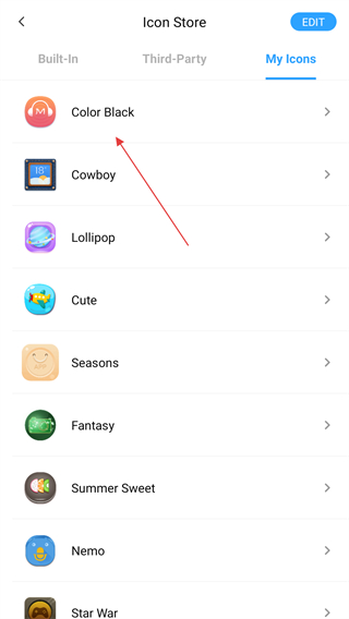 2、從內(nèi)置圖標包,圖庫,其他應(yīng)用程序圖標或第三方個性化圖標包中選擇新圖像。