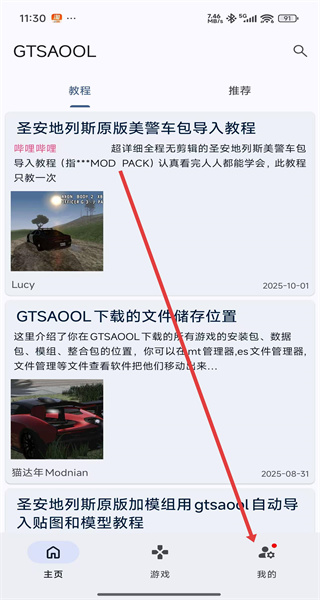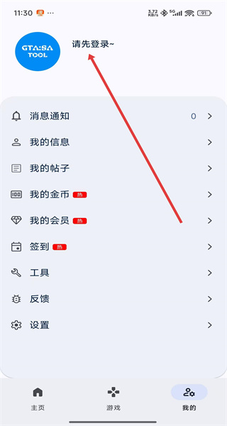 1、在GTSAOOL首頁點擊右下角“我的”,進入個人中心頁面。