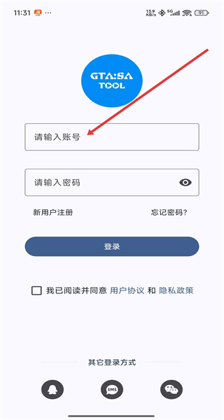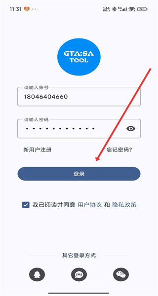 3、登錄界面輸入賬號和密碼,勾選“我已閱讀并同意用戶協議和隱私政策”。