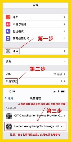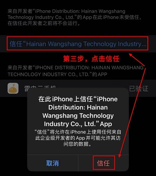 如果找不到第三步,請在蘋果手機的設(shè)置→通用→設(shè)備管理里面查找