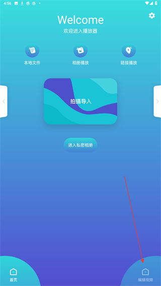 1、啟動(dòng)NO視頻APP,在首頁(yè)右下角點(diǎn)擊視頻編輯的按鈕。