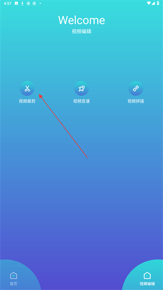 2、進(jìn)入視頻編輯的界面內(nèi),點(diǎn)擊視頻裁剪的功能按鈕。