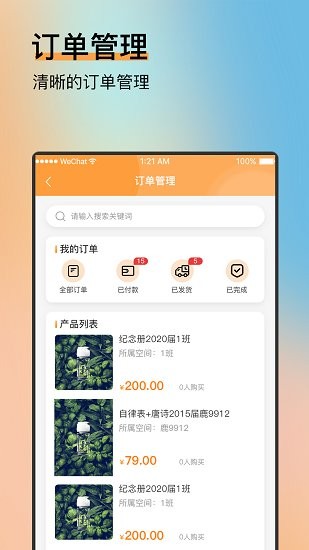 查看全部狀態(tài)訂單,商品列表可單獨查看某一商品的購買記錄和支付總額,讓訂單信息一目了然。