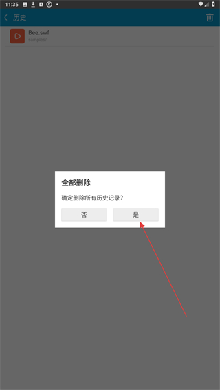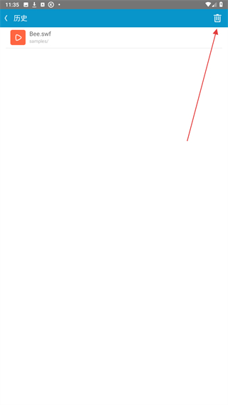 2、進(jìn)入歷史的界面內(nèi),點(diǎn)擊右上角刪除的功能圖標(biāo)。