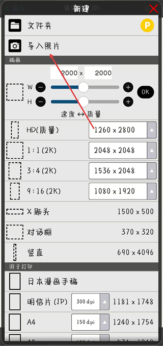 2、可選擇導入照片來導入圖片進行編輯,也可選擇不同畫布創(chuàng)建。