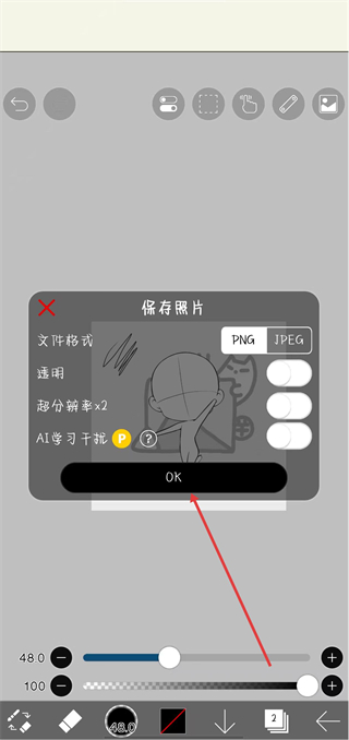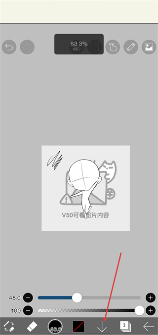 3、在編輯頁面進行繪畫、調整等操作,完成后點擊底部下載圖標。